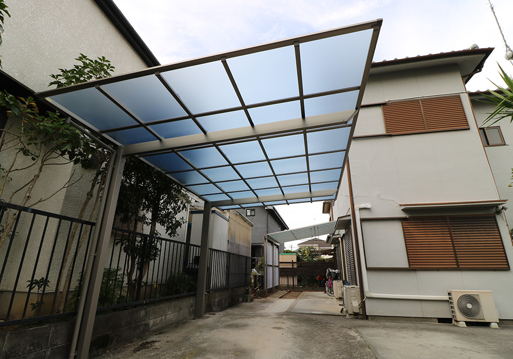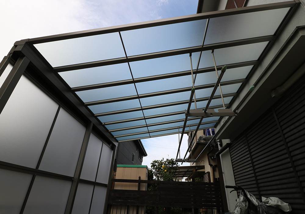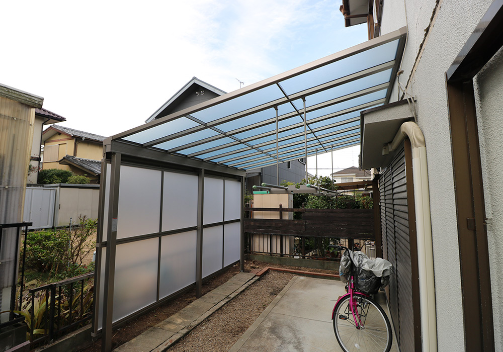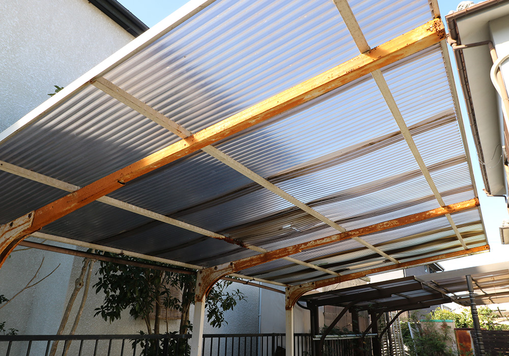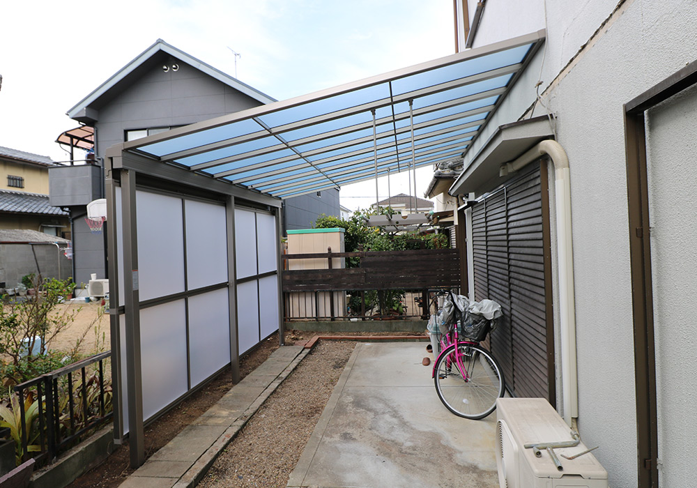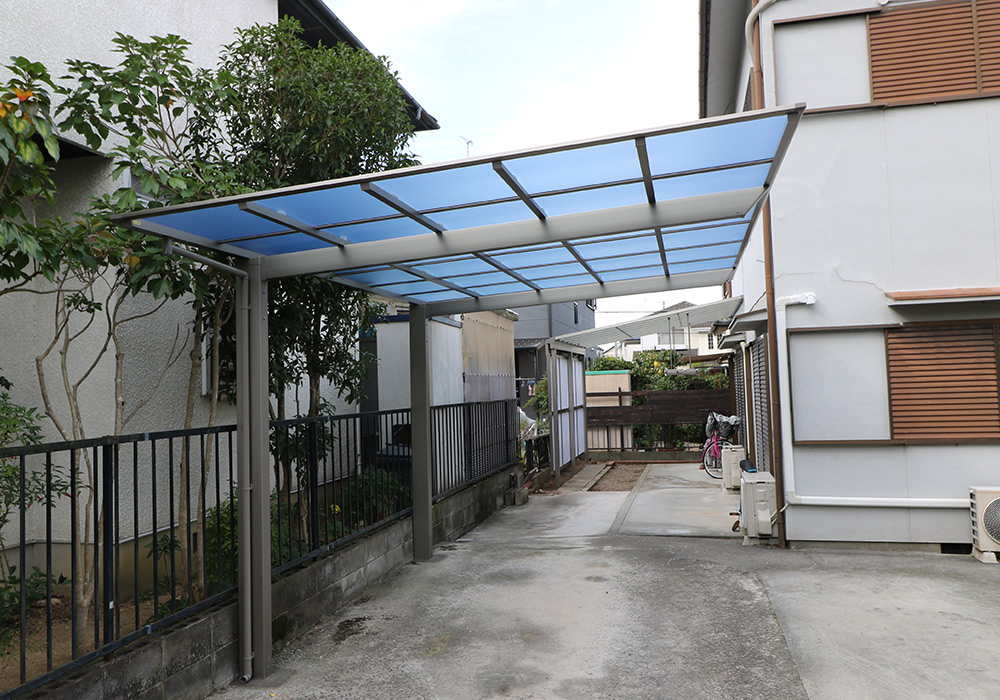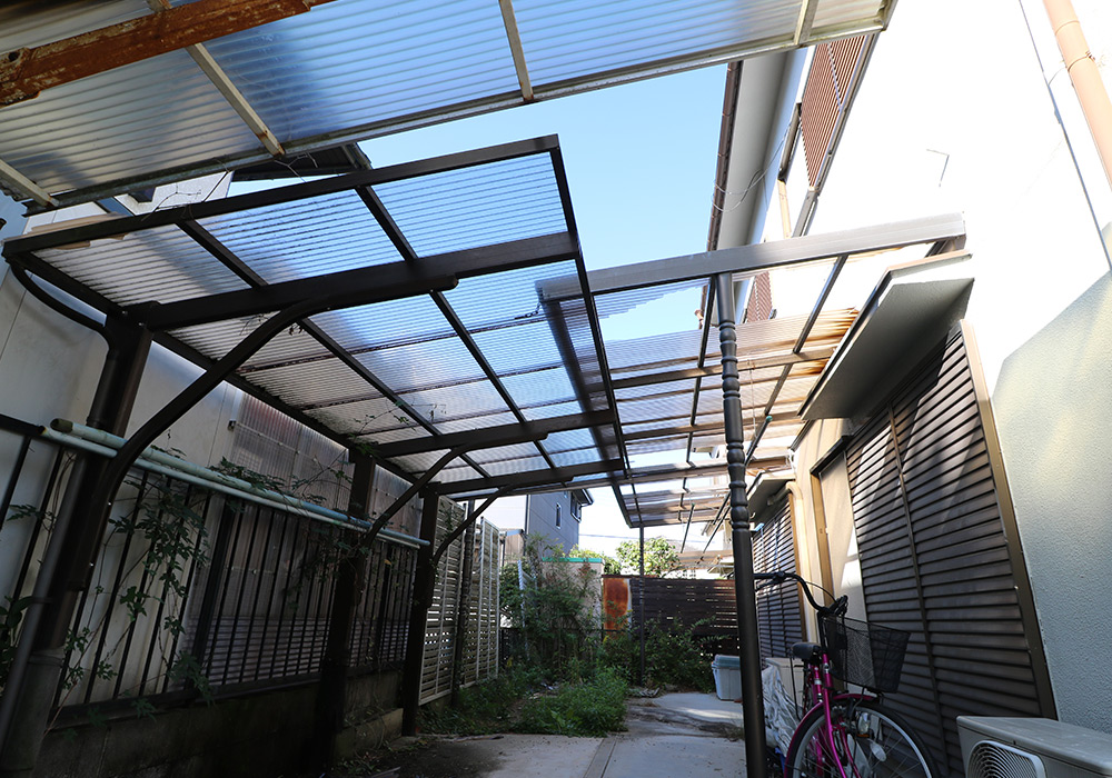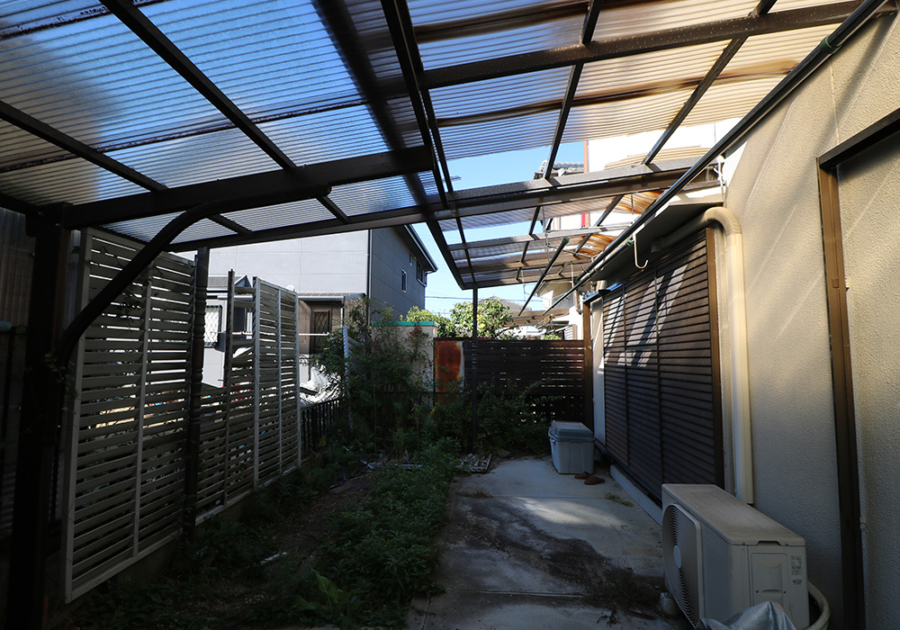 三木市 A様邸【カーポート・テラス屋根の修繕】損傷箇所カーポート、テラス屋根保険金額88万円自己負担0円台風で破損したカーポート・テラス屋根を新しいものに取り替え、郵便ポストも新しくしました。修繕前の様子 修繕後の様子