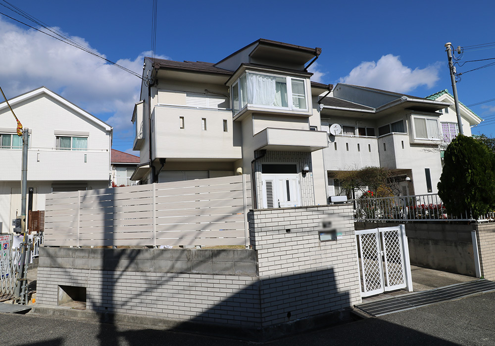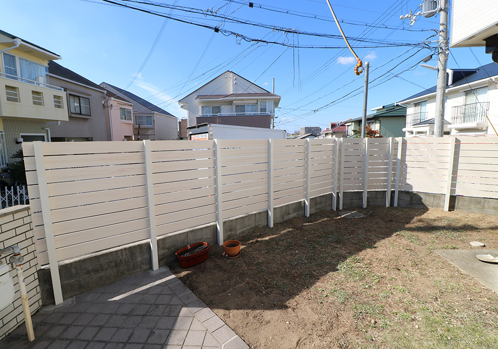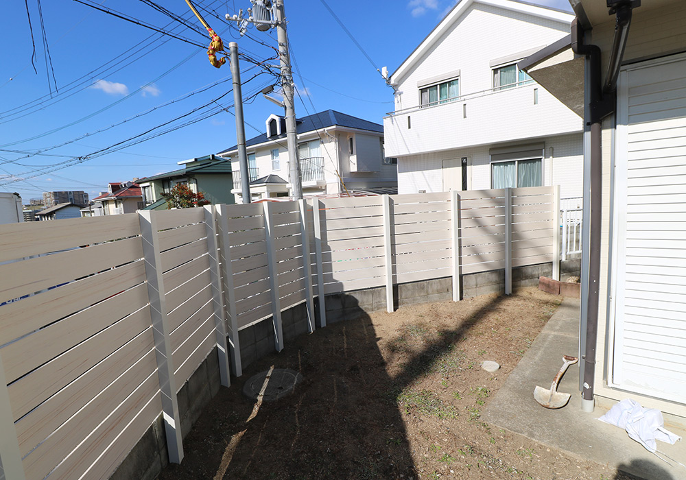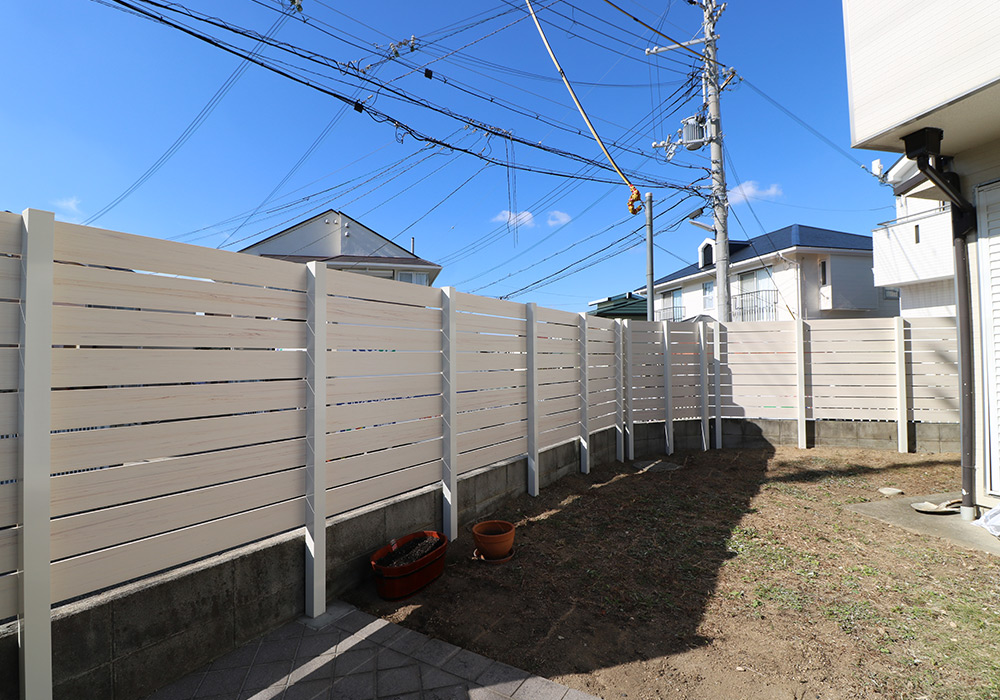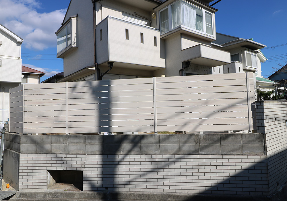 神戸市垂水区 N様邸【フェンスの修繕】損傷箇所フェンス保険金額45万円自己負担0円修繕前の様子台風で破損したフェンスを撤去して、新しいフェンス(F&Fマイティウッドフェンス)を設置いたしました。 目隠し機能のある人気のフェンスです。 修繕後の様子