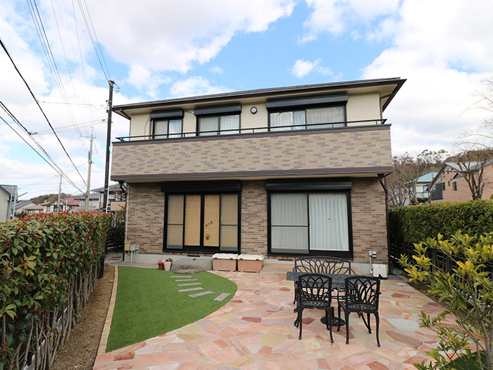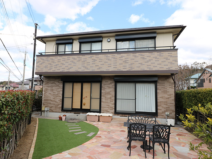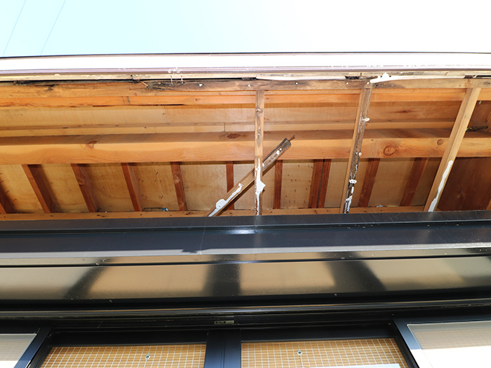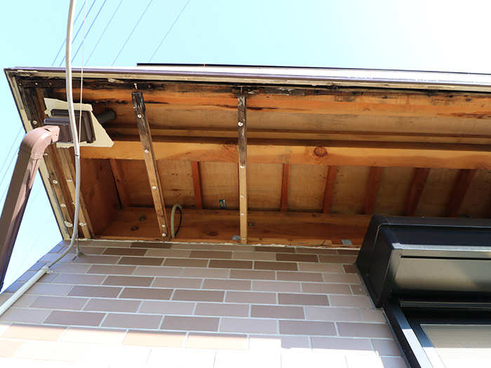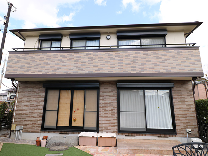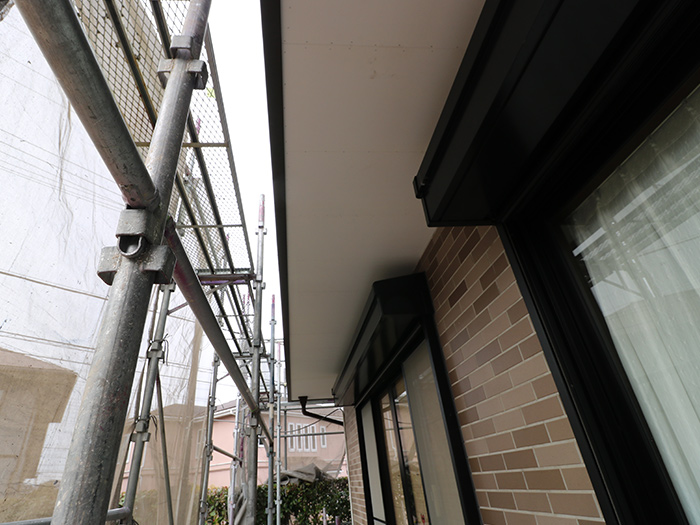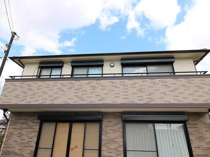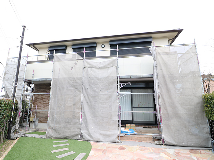 過去に弊社で外構工事をさせて頂いた神戸市西区のU様より、台風によりバルコニーが破損しているとご連絡を頂きました。 軒下に加えて、前面の外壁も損傷しておりましたので、水漏れを防止するためにも、足場を組んで、外壁材の張り替え工事が必要と判断させて頂きました。 総額300万円の見積となりましたが、保険会社に必要性が認められ、全額保険金で工事をすることができました。
